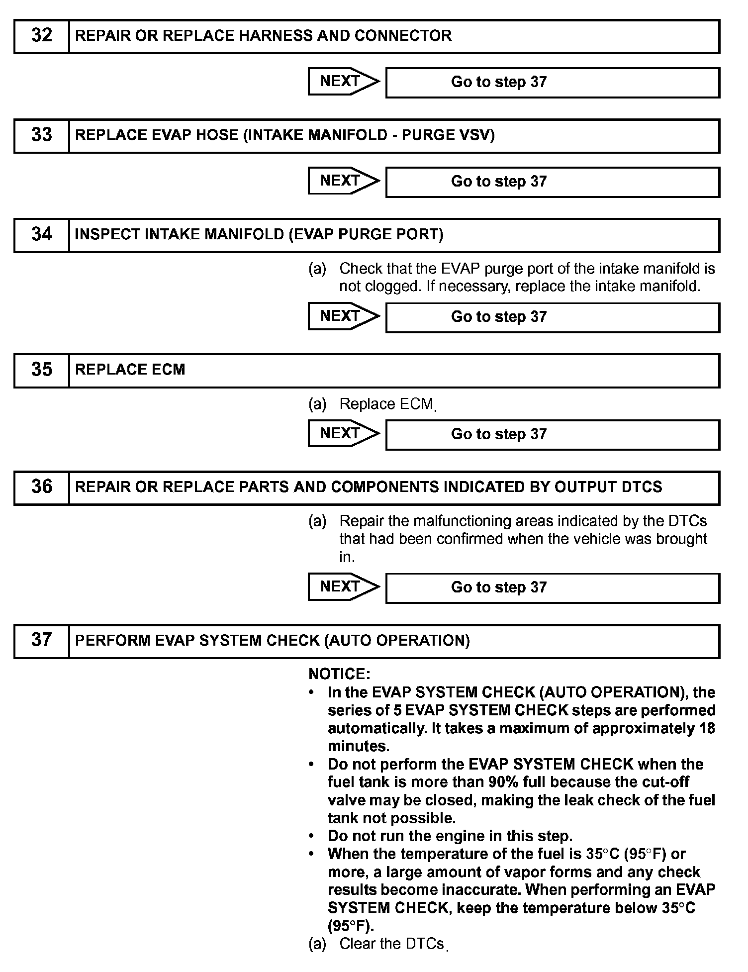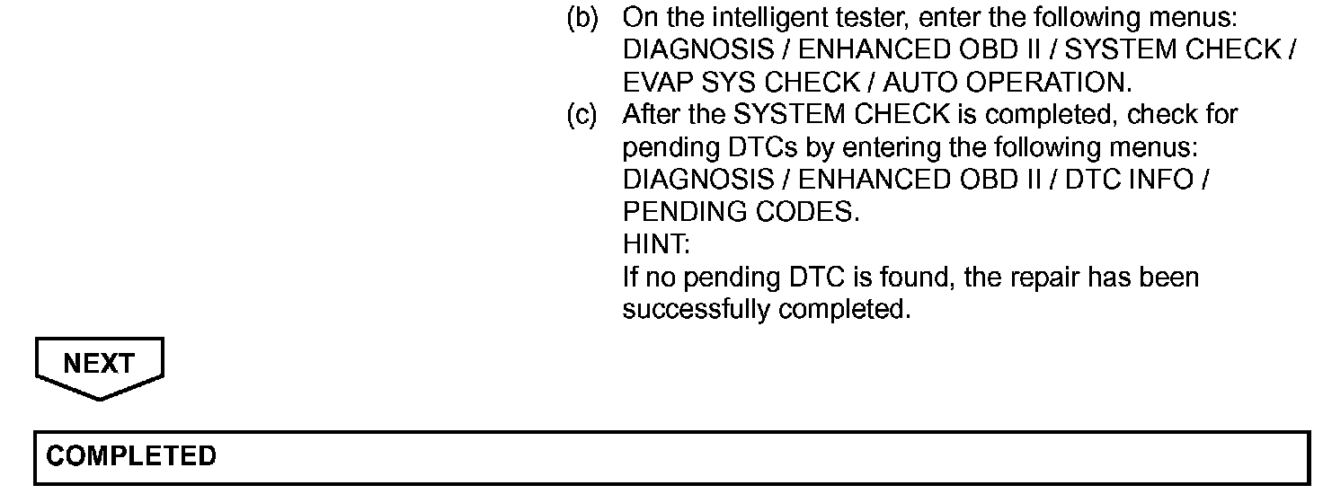 HINT: After a repair, check Monitor Status by performing the key-off monitor confirmation and purge flow monitor confirmation described .