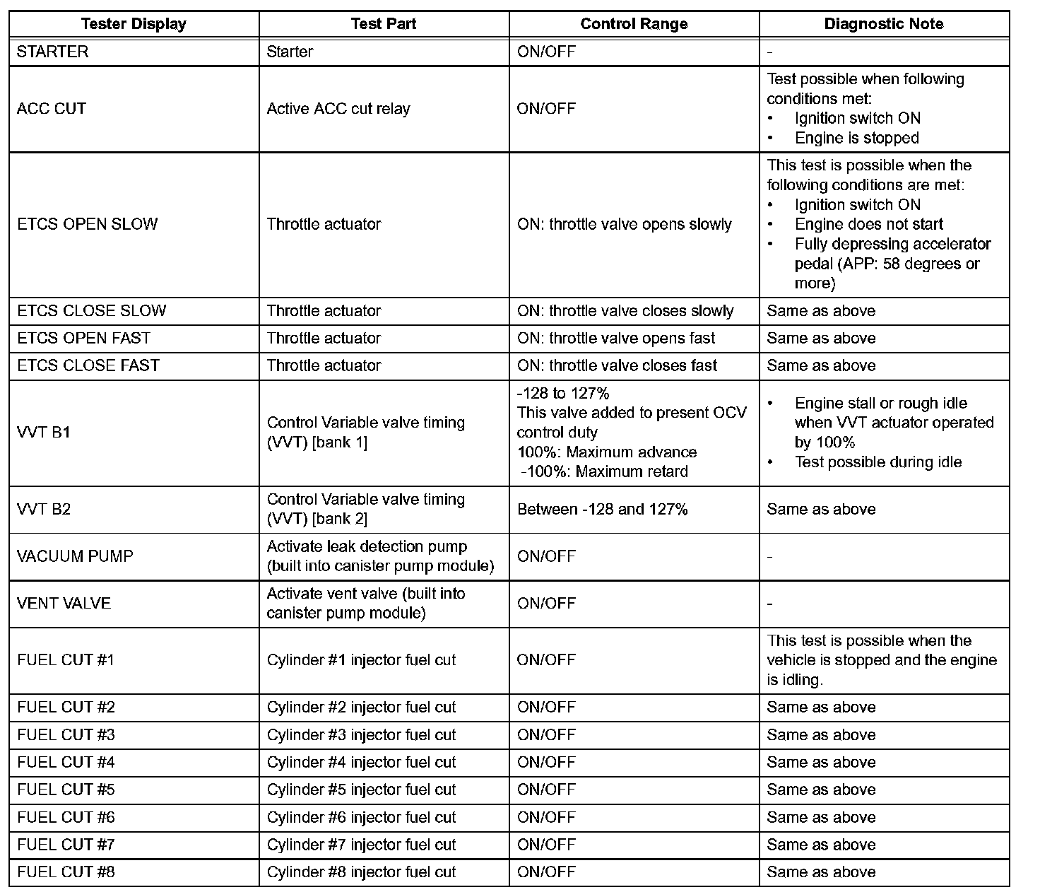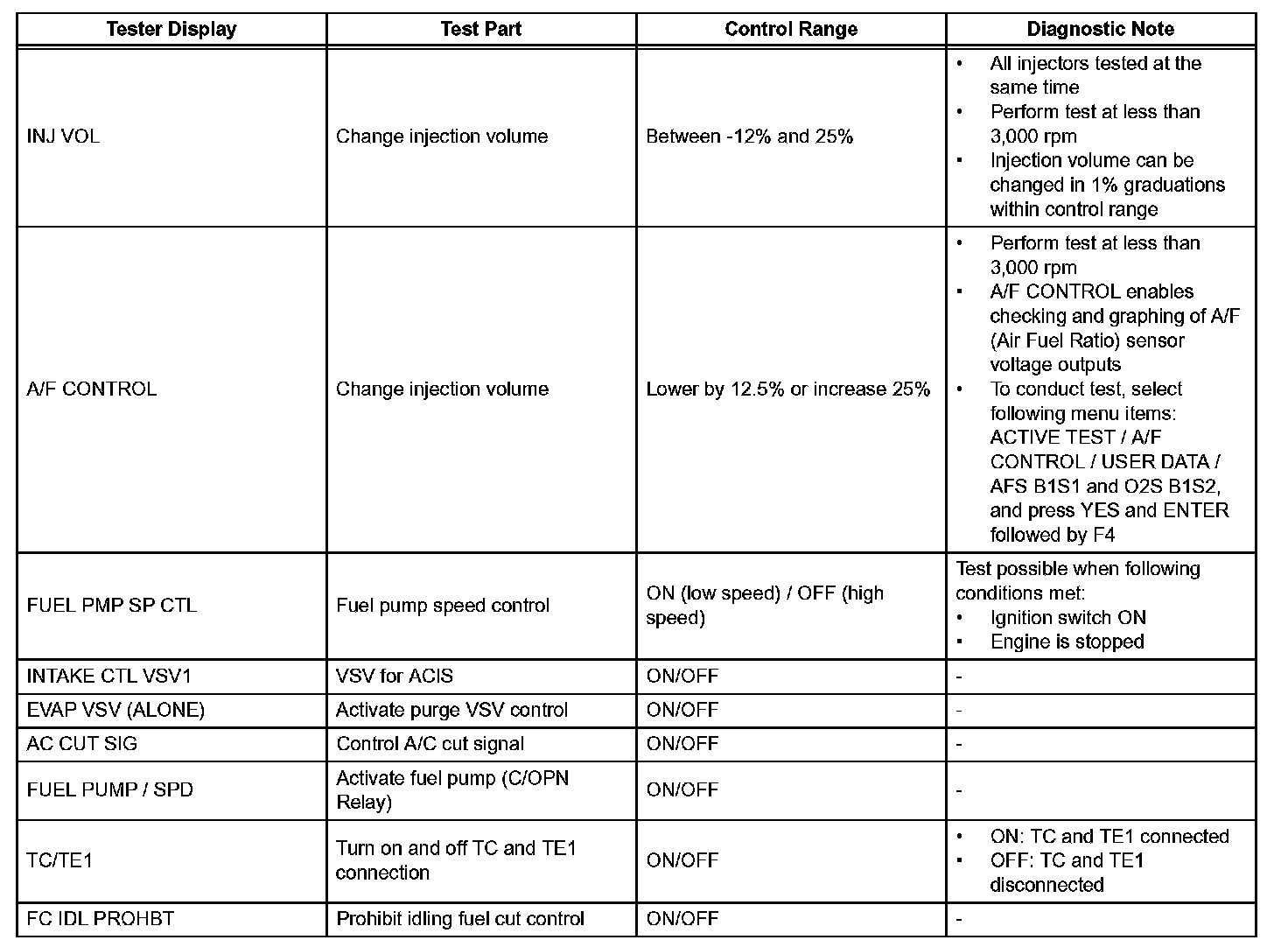 ACTIVE TESTHINT: Performing the intelligent tester's ACTIVE TEST allows relay, Vacuum Switching Valve (VSV), actuator and other items to be operated without removing any parts. Performing the ACTIVE TEST early in troubleshooting is one way to save time. The DATA LIST can be displayed during the ACTIVE TEST.