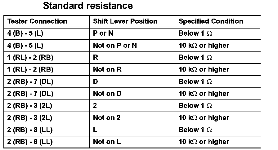 (b) Measure the resistance of the PNP switch when the shift lever is moved to each position.