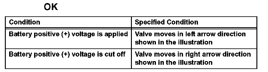 If the result is not as specified, replace the oil control valve assembly. If the valve cannot return properly because of foreign matter, a small pressure leak in the advanced direction may occur and a DTC may be output.