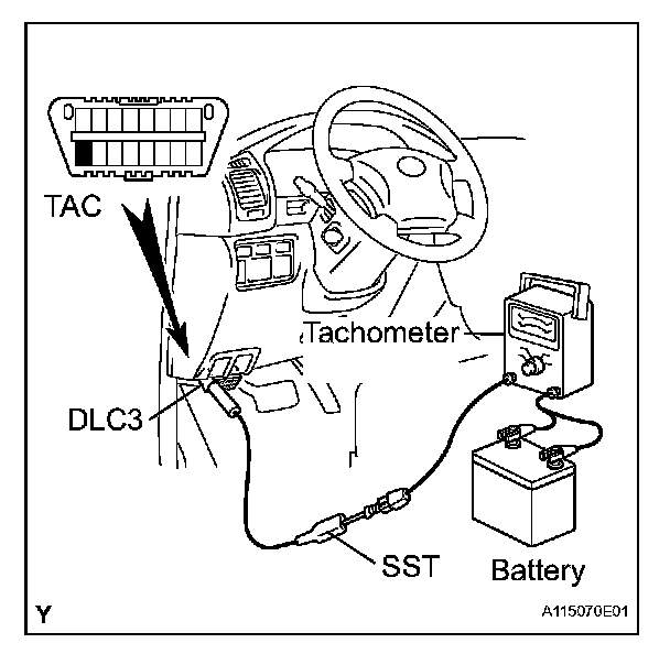 (3) Using SST, connect the tachometer probe to terminal TAC of the DLC3.
