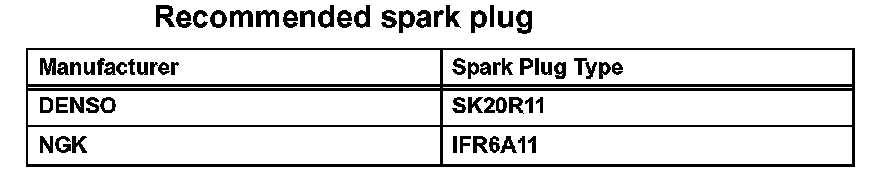 Electrode gap for new spark plug: 1.0 to 1.1 mm (0.039 to 0.043 in.)