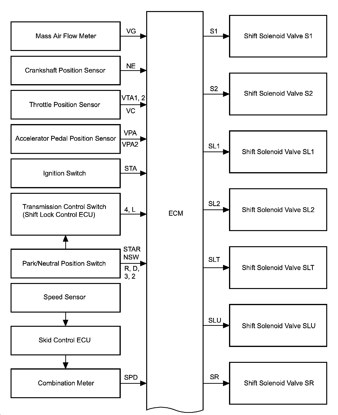 SYSTEM DIAGRAMThe configuration of the electronic control system in the A750F automatic transmission is as shown in the following chart.