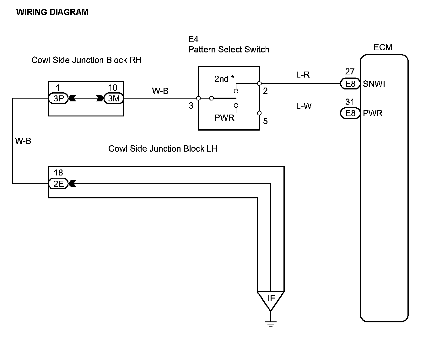 When 2nd start mode is selected with the pattern select switch, the ECM controls the solenoid valves and the transmission starts from 2nd gear.