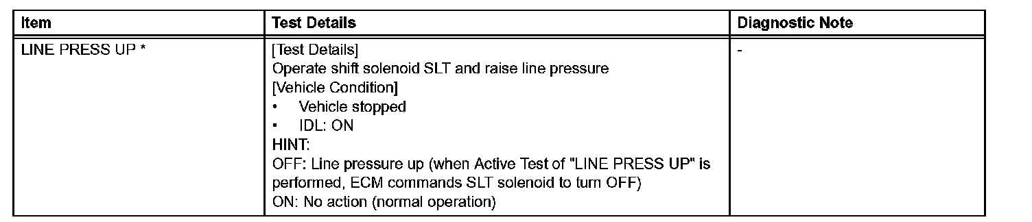 HINT: *: Control the Line Pressure Up in the ACTIVE TEST is performed to check the line pressure changes by connecting SST to the automatic transmission, which is used in the HYDRAULIC TEST as well. Hydraulic Test