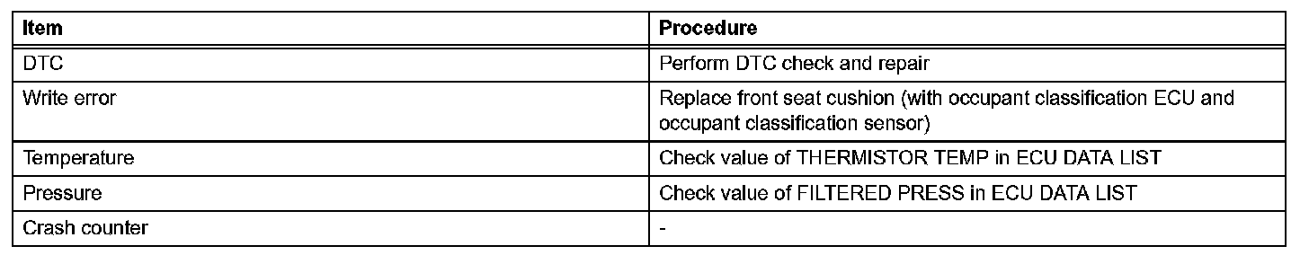 HINT: *: If After Exchange is selected before the previous ECU data is stored in the intelligent tester, the display screen returns to CONDITION SELECT ECU: Occupant Detect.