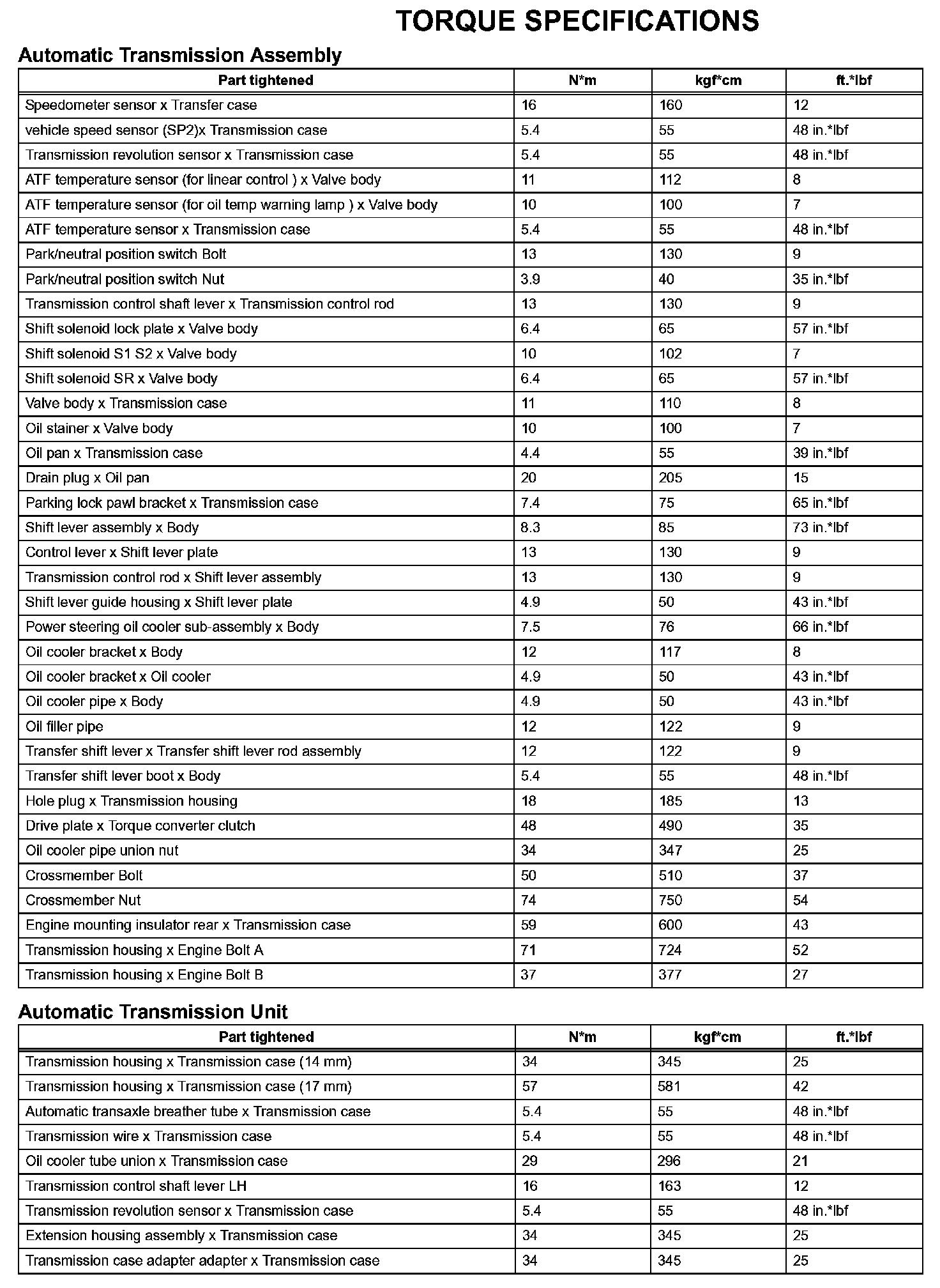 Automatic Transmission - Torque Specifications (Part 2):