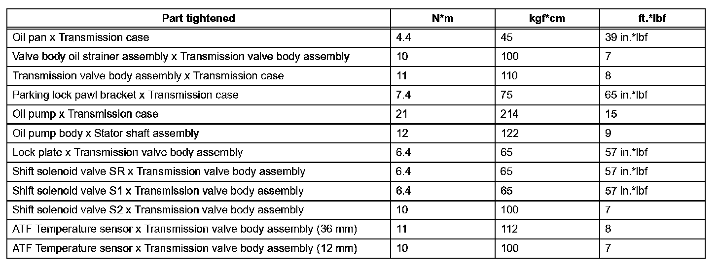 Automatic Transmission - Torque Specifications (Part 1):