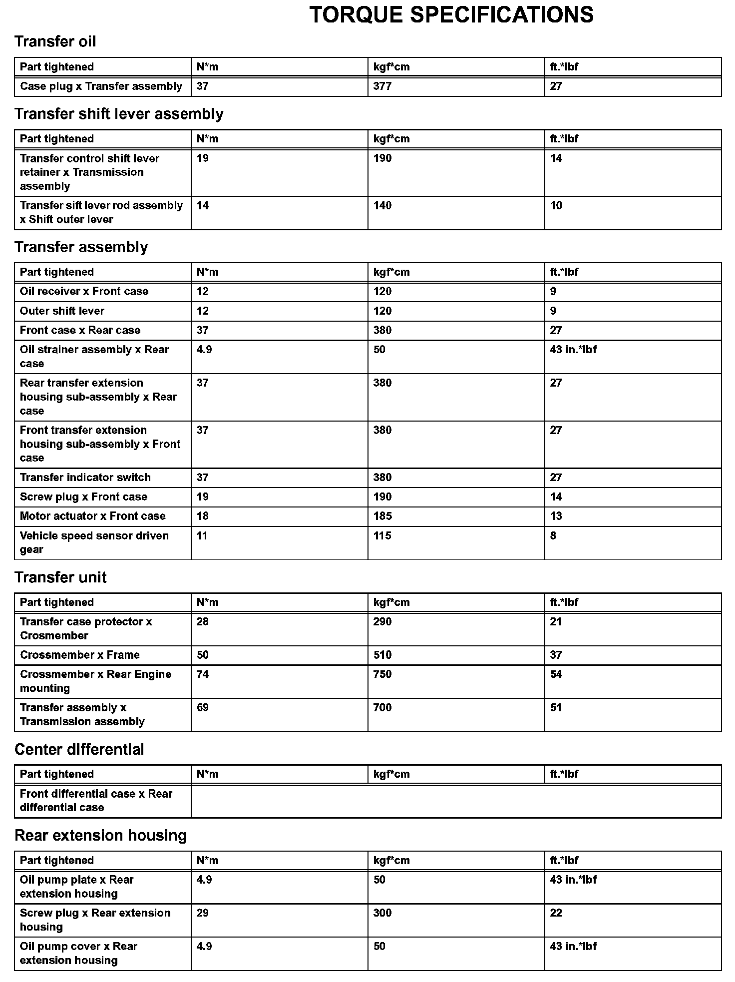 Transfer - Torque Specifications: