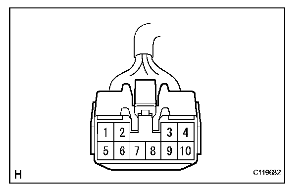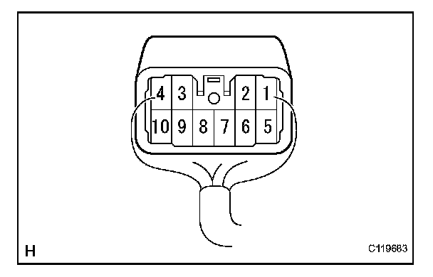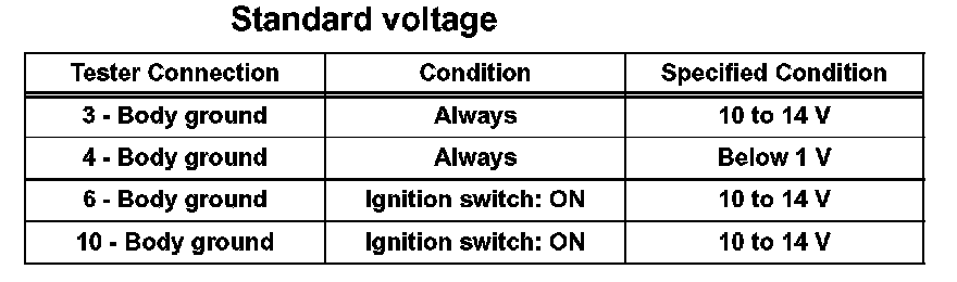 2. Connect the connector to the defroster mode switch and inspect the wire harness side connector from the back side, as shown in the chart.
