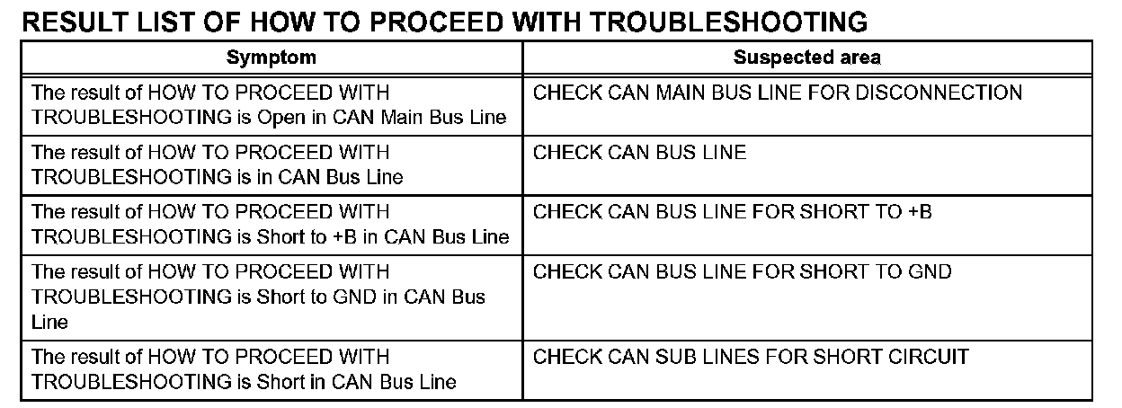 PROBLEM SYMPTOMS TABLE