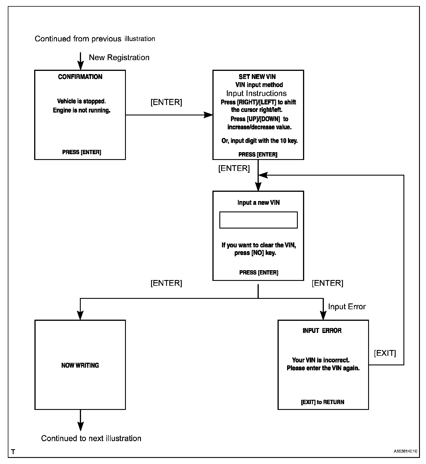 This process allows the VIN to be input into the ECM. If the ECM is changed, or the ECM VIN and Vehicle VIN do not match, the VIN can be registered, or overwritten in the ECM by following this procedure.