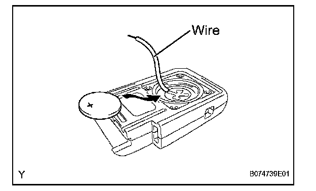 2. Connect a wire to the negative (-) terminal of the transmitter and install the battery.