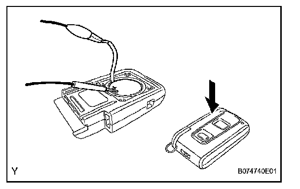 3. From outside the vehicle, approximately 1 m (3.28 ft.) from the driver the outside door handle, test the transmitter by pointing transmitter at the vehicle and pressing a transmitter switch.