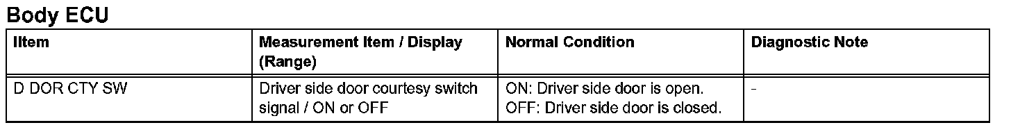 READ DATA LISTHINT: Using the intelligent tester's DATA LIST allows switch, actuator and other item values to be read without removing any parts. Reading the DATA LIST early in troubleshooting is one way to save time.