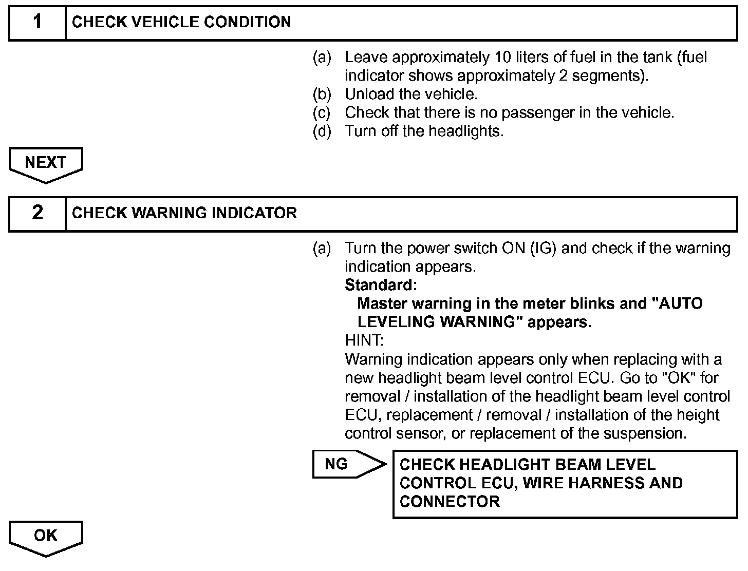 1. HEADLIGHT BEAM LEVEL CONTROL ECU INITIALIZATION
