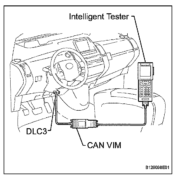 Connect the cable of the intelligent tester to the DLC3, turn the power switch ON (IG) and attempt to use the tester. If the display indicates that a communication error has occurred, there is a problem either with the vehicle or with the tester.