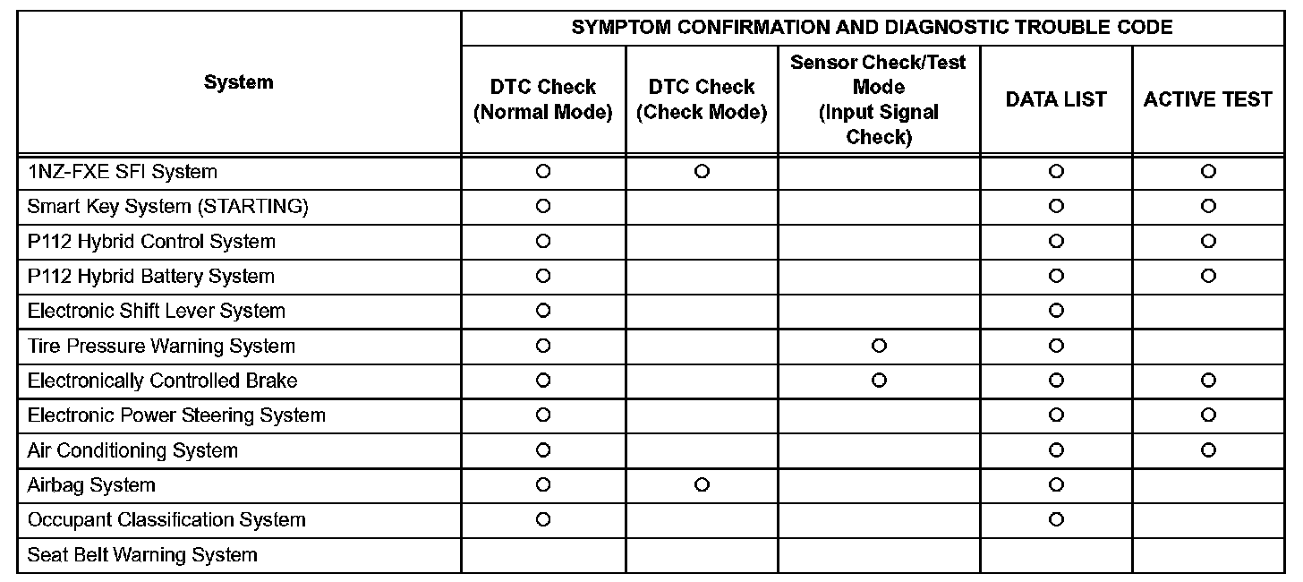 SYMPTOM CONFIRMATION AND DIAGNOSTIC TROUBLE CODEHINT: The diagnostic system in the PRIUS has various functions.