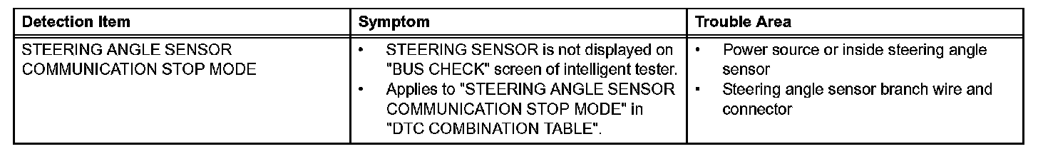 Steering Angle Sensor Communication Stop Mode