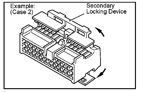 b. Use a special tool or the terminal pick to unlock the secondary locking device or terminal retainer.