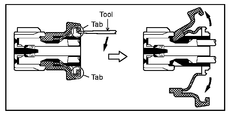 a. Locking device must be disengaged before the terminal locking clip can be released and the terminal removed from the connector.