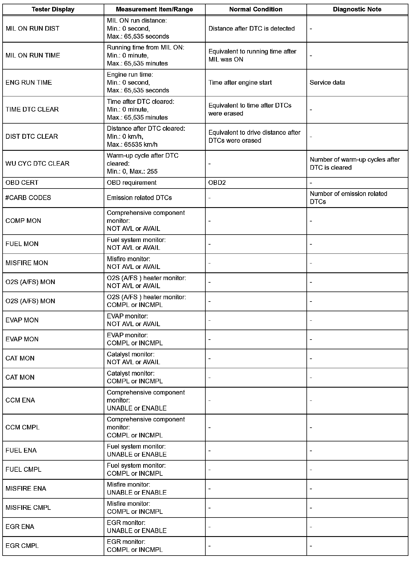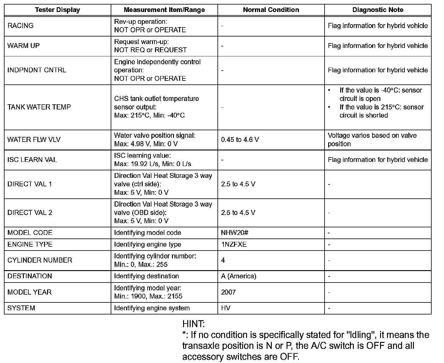 NOTE: In the table given, the values listed under "Normal Condition" are reference values. Do not depend solely on these reference values when deciding whether a part is faulty or not.