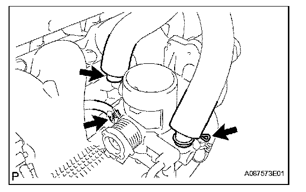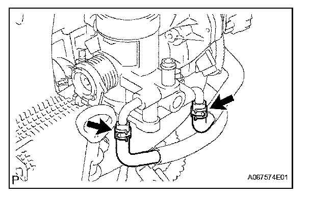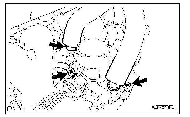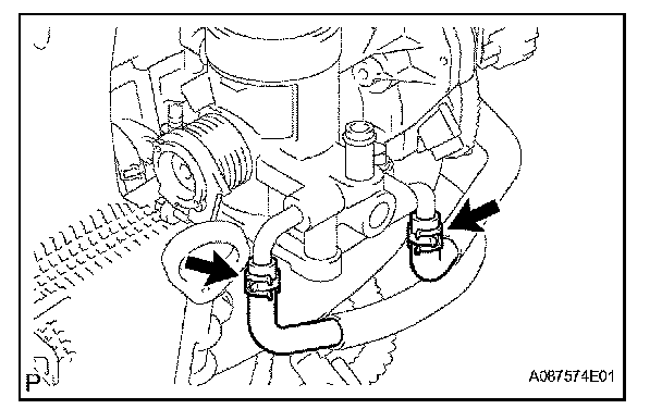 e. Disconnect the No. 2 water by-pass hose.