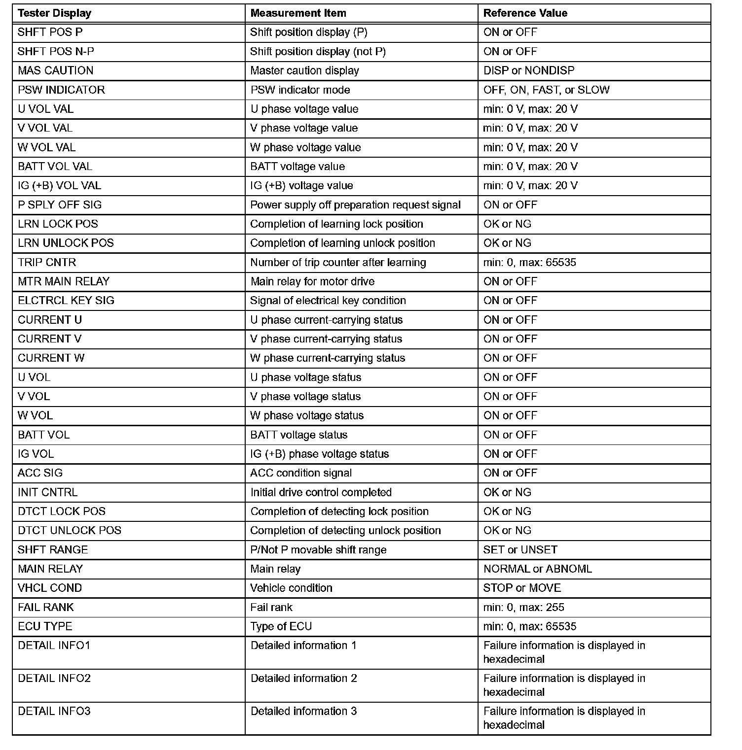 a. The vehicle status, stored during system operation or at the time of an error code detection, can be displayed by the intelligent tester.