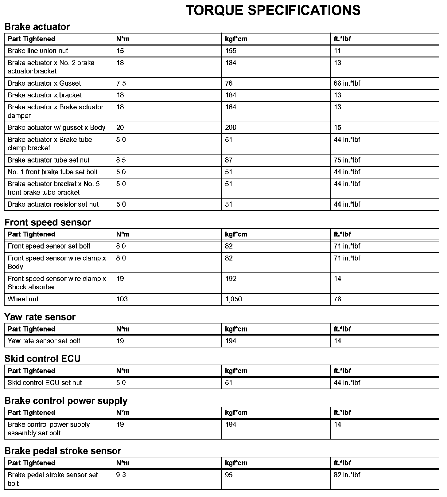 Brake Control - Torque Specifications: