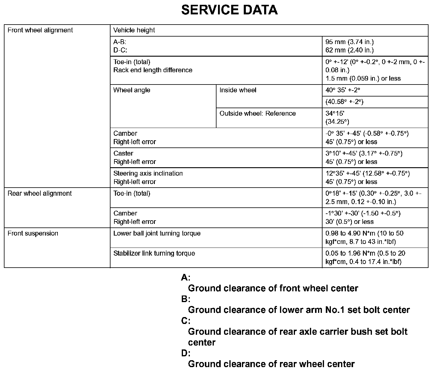 Suspension - Service Data: