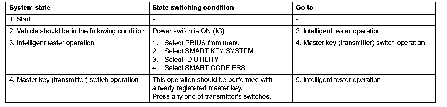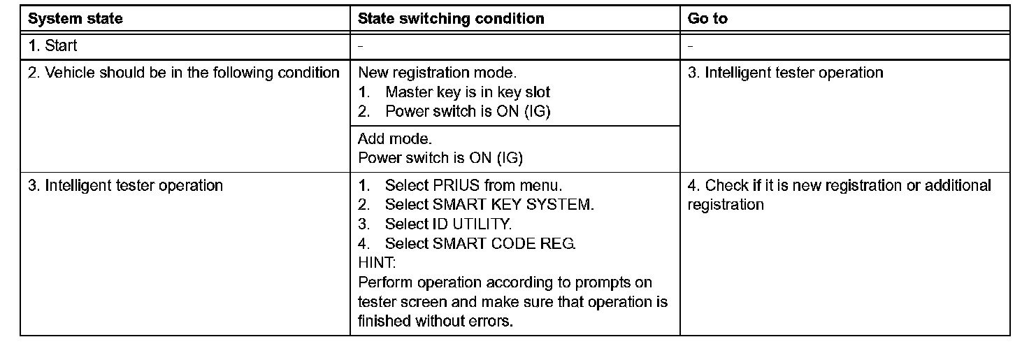 - A brief outline of procedures for key code registration is shown. For more detailed information, please refer to the intelligent tester screen's instructions.