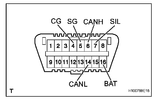 The vehicle's ECM uses ISO 15765-4 communication protocol. The terminal arrangement of the DLC3 complies with ISO 15031-03 and matches the ISO 15765-4 format.