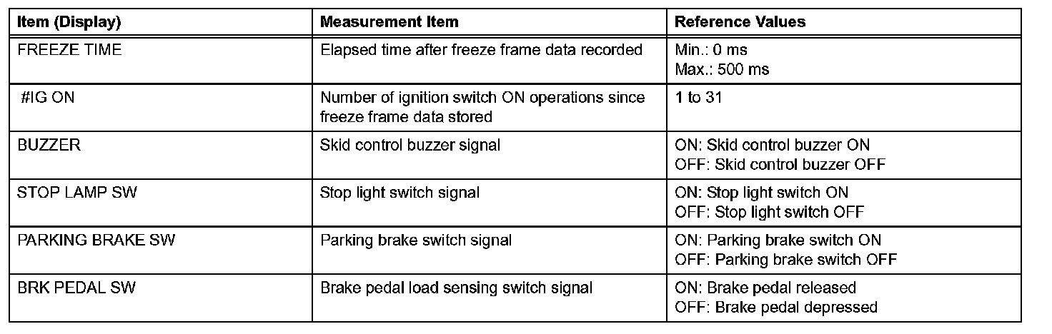 - Whenever a DTC is detected or the ABS operates, the skid control ECU stores the current vehicle (sensor) state as freeze frame data.