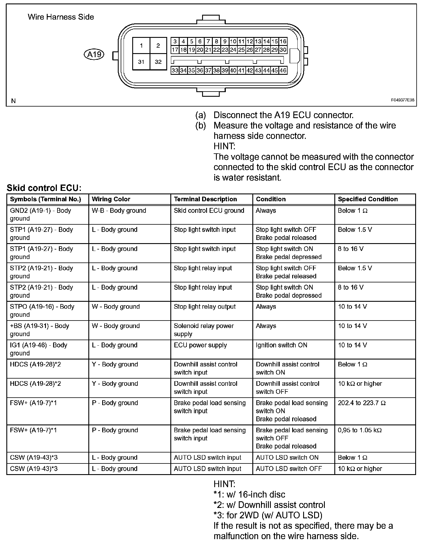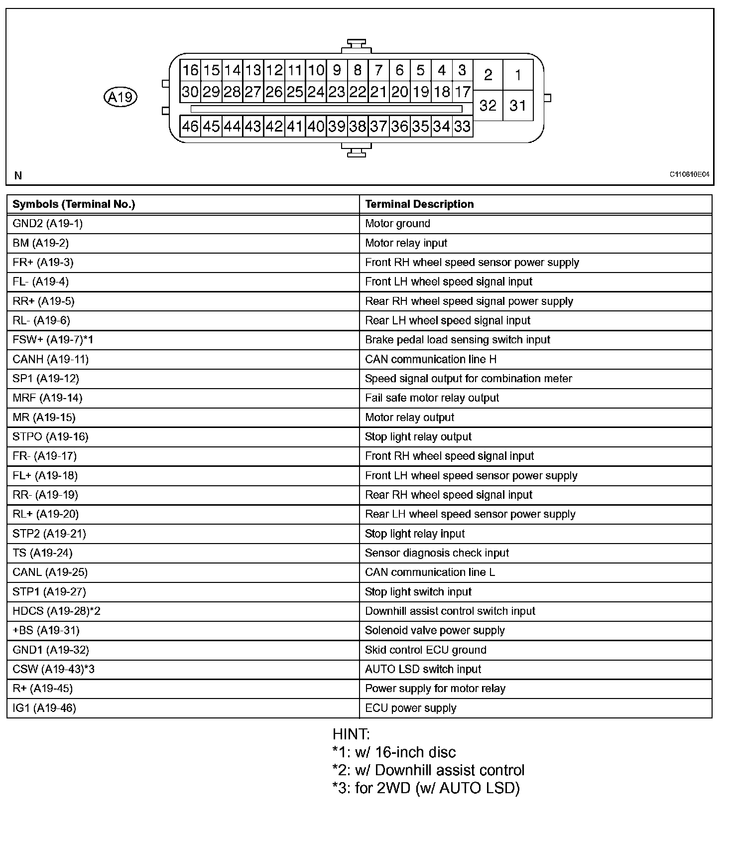 Terminals Of Control Module/Pinouts-Check Skid Control ECU:
