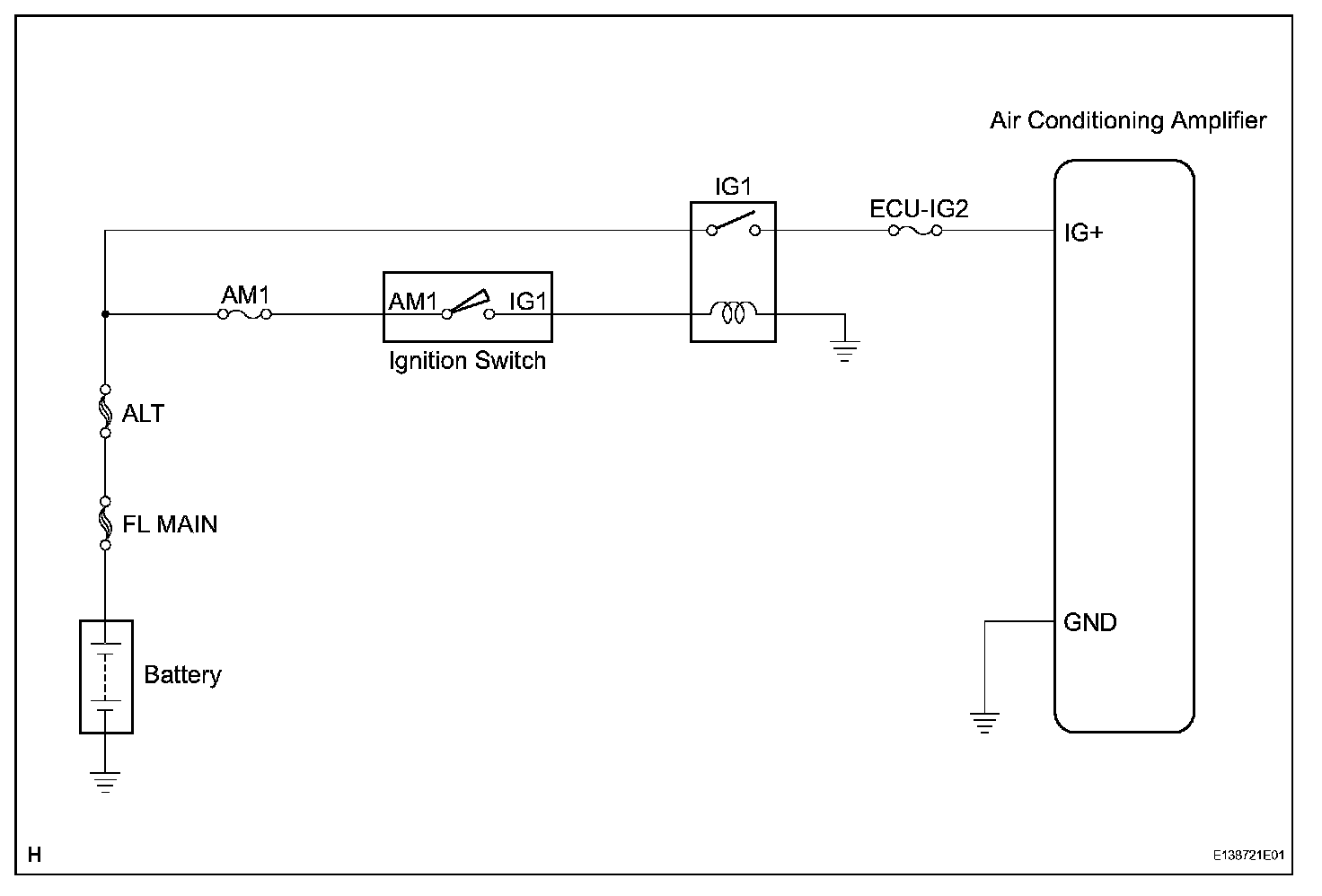 IG Power Source Circuit DESCRIPTION This is the main power source supplied to the air conditioning amplifier when the ignition switch is ON (IG). This power source is used for operating components, such as the air conditioning amplifier and servo motors.