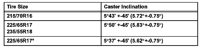 Standard Caster Inclination (unloaded vehicle):
