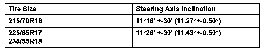 Standard Steering Axis Inclination (unloaded vehicle):