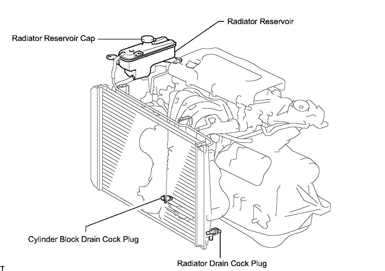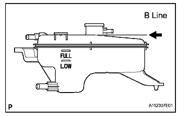 ^ Immediately after starting the engine, if the radiator reservoir does not have any coolant, perform the following: 1) stop the engine, 2) wait until the coolant has cooled down, and 3) add coolant until the coolant is filled to the B line.