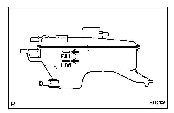 If the coolant level is above the FULL line, drain coolant so that the coolant level is between the FULL and LOW line.