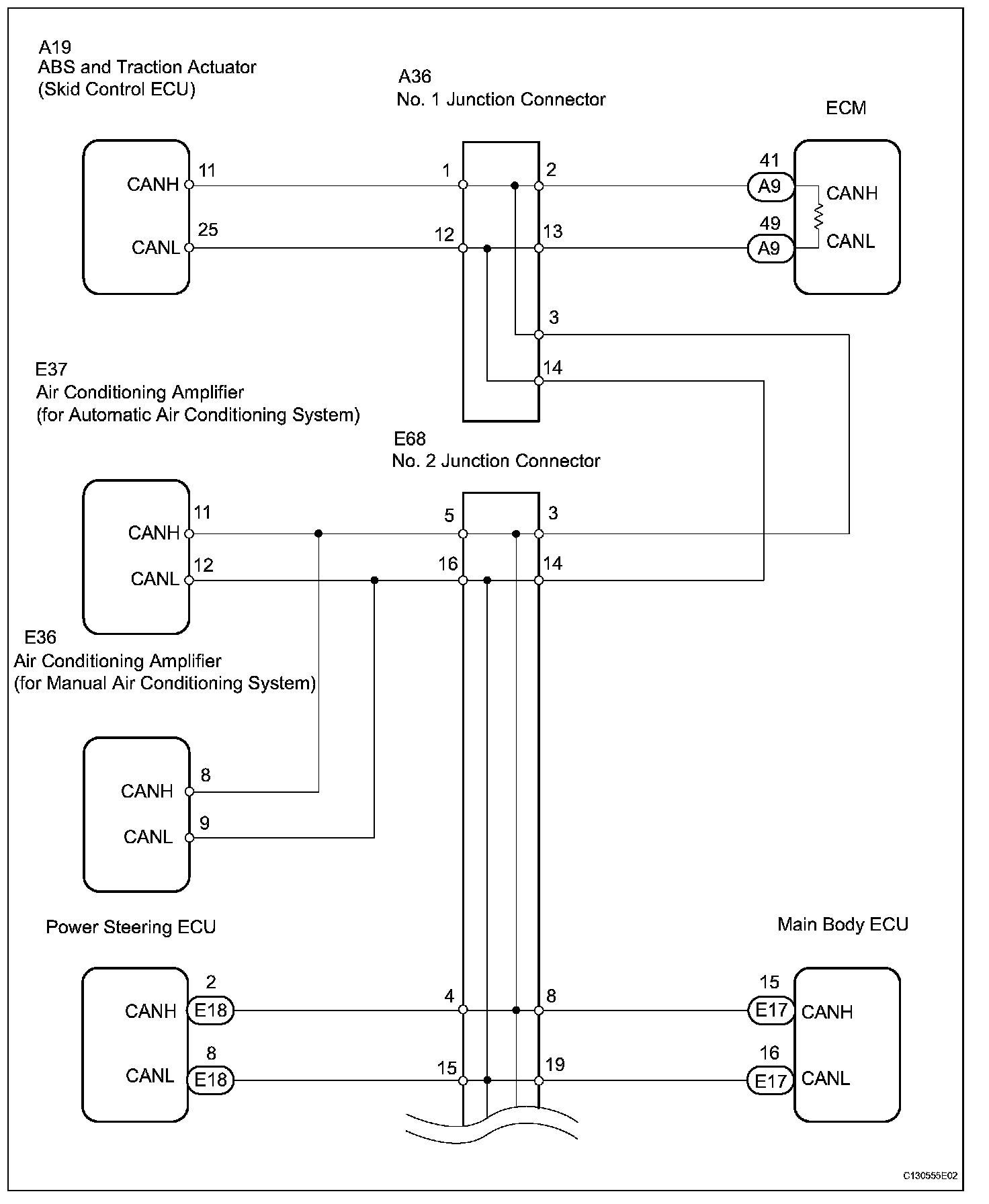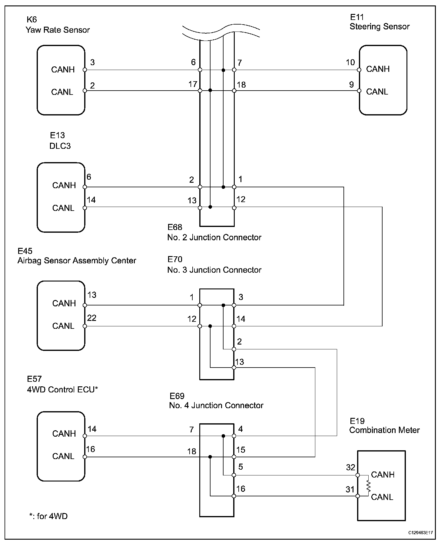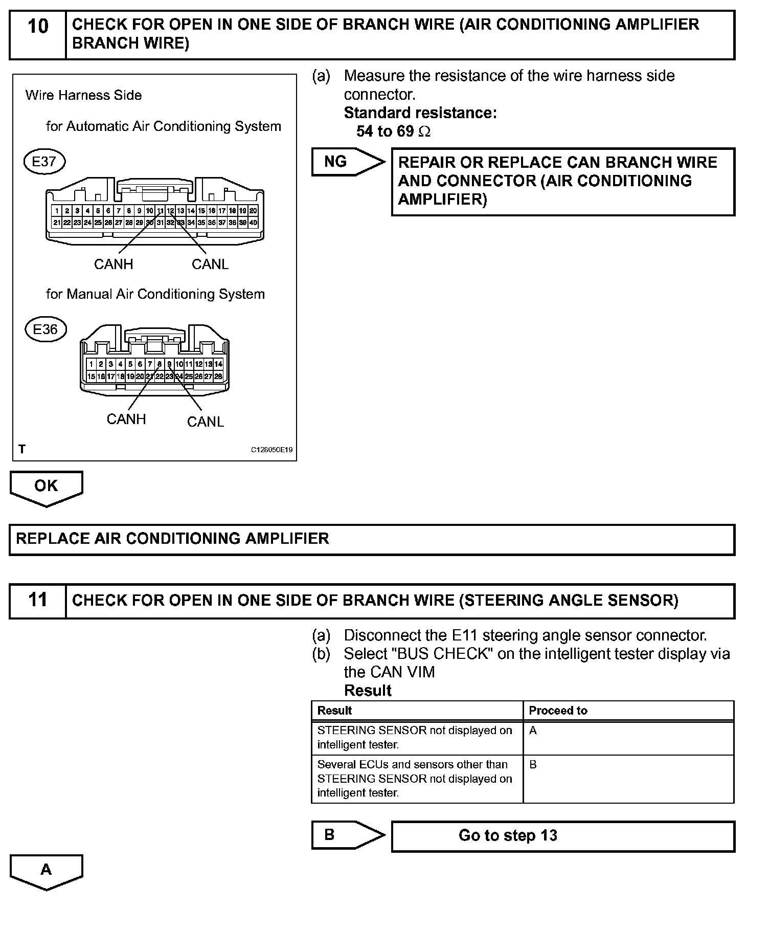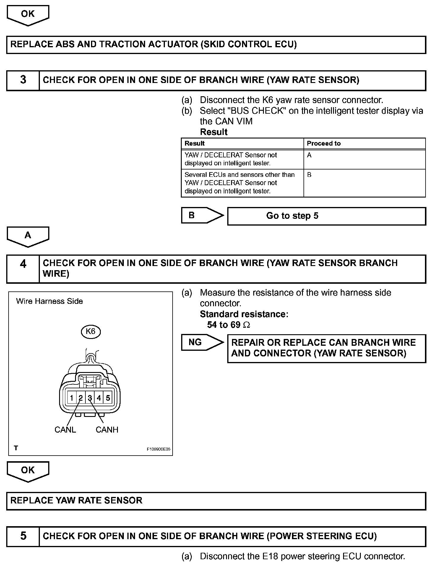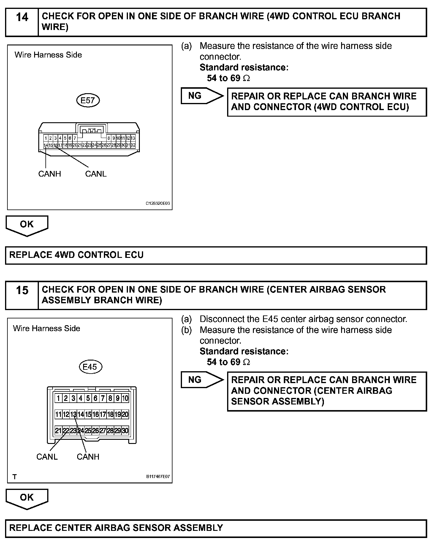 - The open circuit confirmation of the combination meter, ECM and main wire is performed in the CHECK CAN BUS LINE procedure of HOW TO PROCEED WITH TROUBLESHOOTING. This inspection only has procedures for checking for an open circuit on one side of the CAN branch wire.