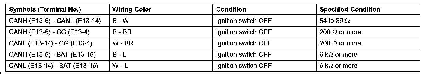 - Turn the ignition switch OFF before measuring the resistances of the main wire and branch wire.