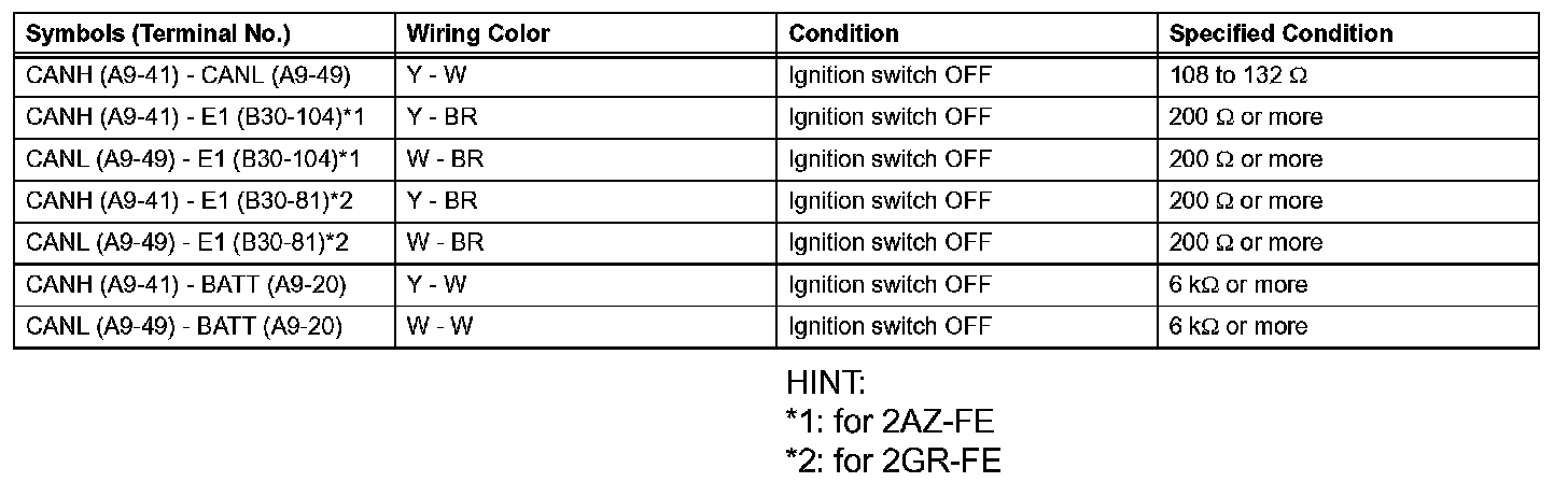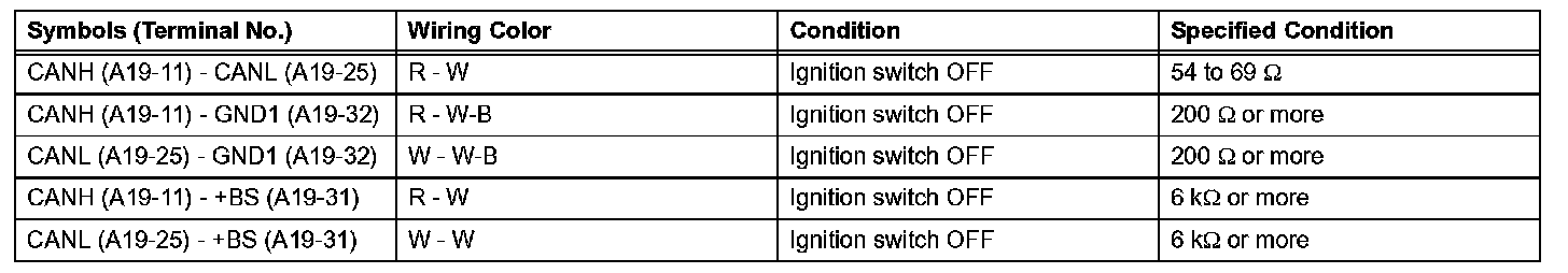 HINT: Operating the ignition switch, any other switches or the doors triggers related ECU and sensor communication with the CAN, which causes resistance variation.