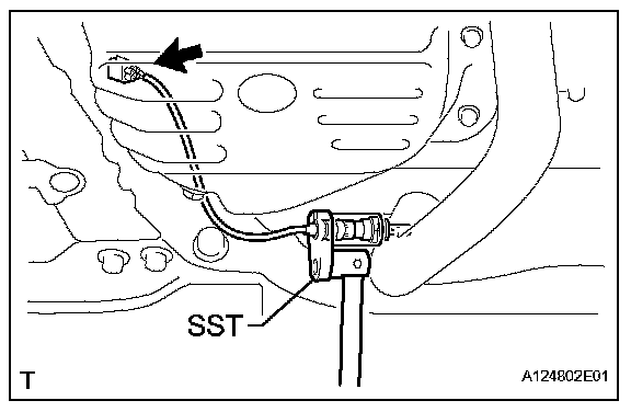 a. Using SST, install the sensor to the front exhaust pipe.