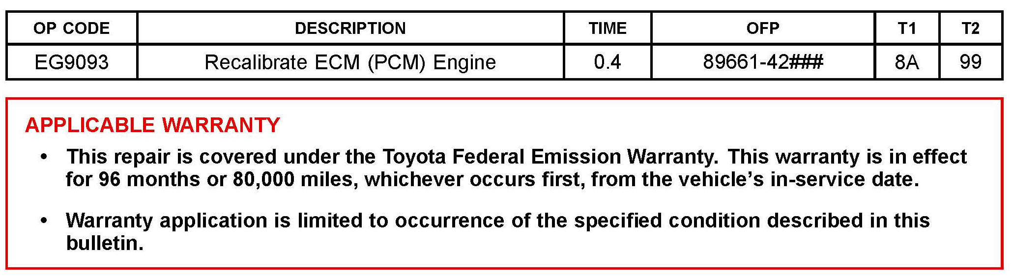 Follow the procedures outlined in TSB No. T-SB-0064-10, "Techstream ECU Flash Reprogramming Procedure� and flash the ECM (PCM) with the NEW calibration file update.