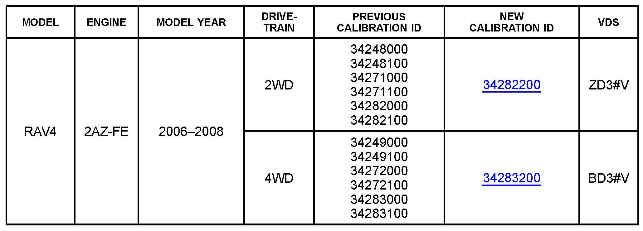 ^ Calibration ID(s) [Refer to the Calibration Identification Chart for the NEW CALIBRATION ID]