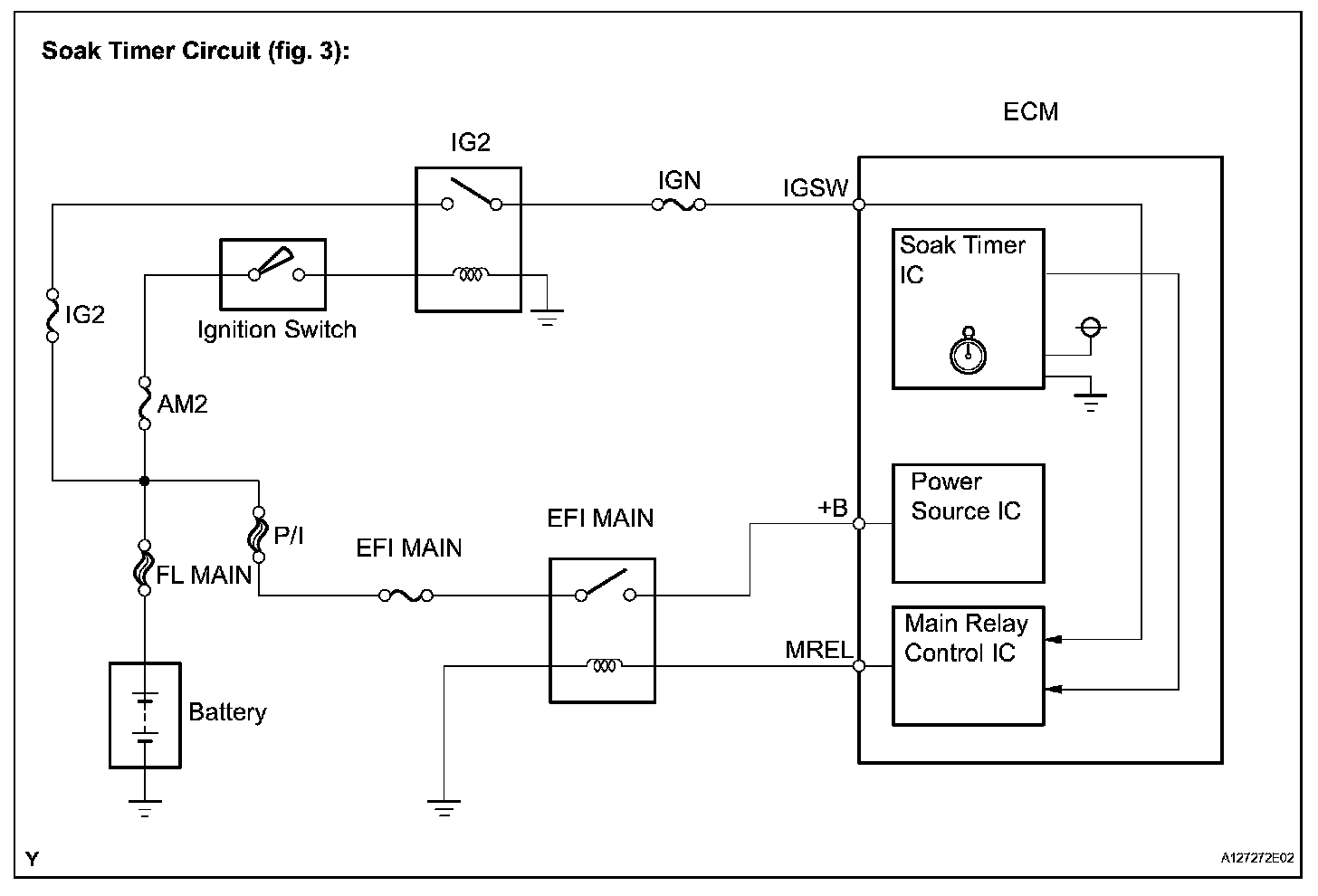 HINT: *: If the engine coolant temperature is not below 35 °C (95 °F) 5 hours after the ignition switch is turned OFF, the monitor check starts 2 hours later. If it is still not below 35 °C (95 °F) 7 hours after the ignition switch is turned OFF, the monitor check starts 2.5 hours later.
