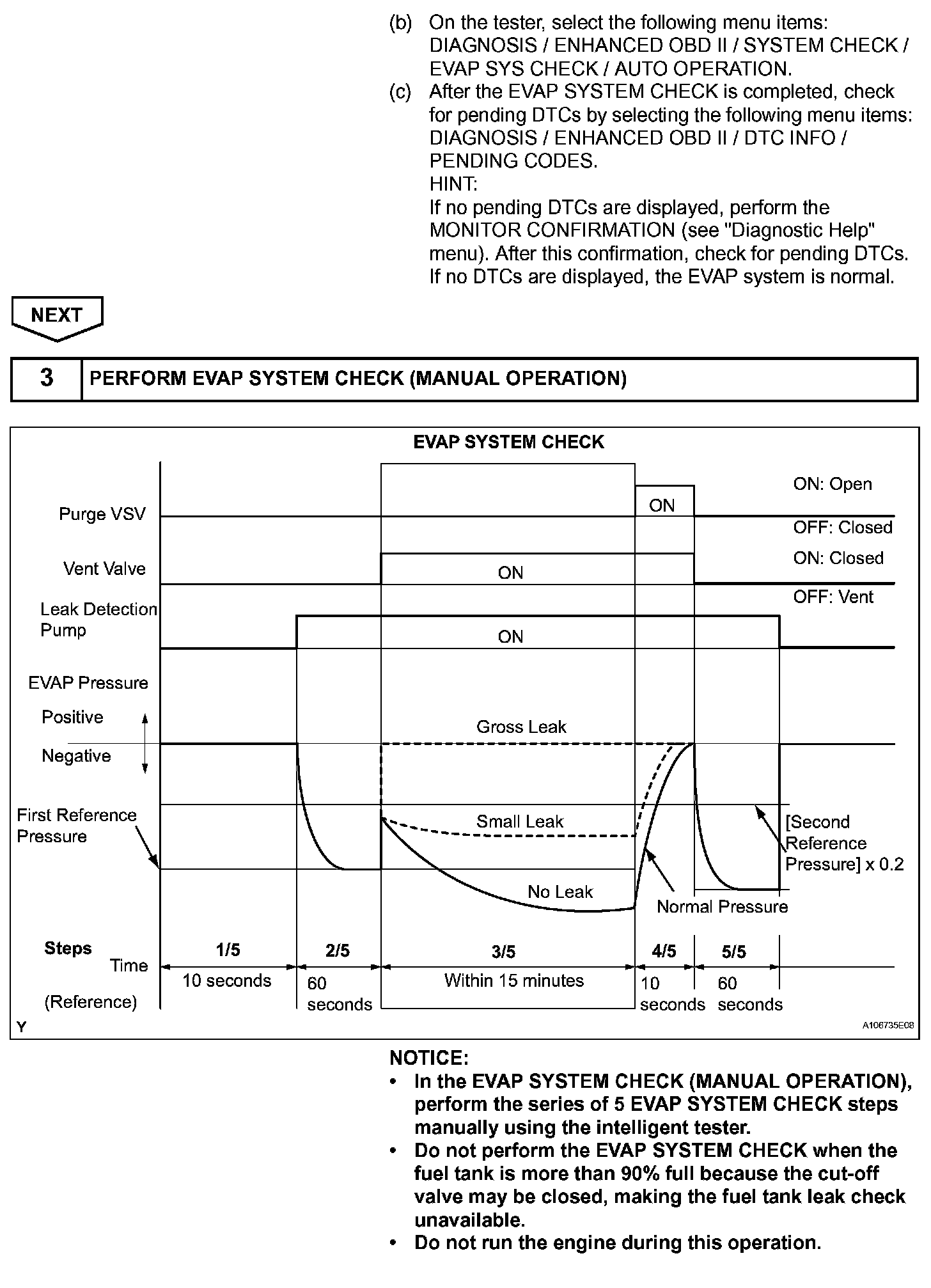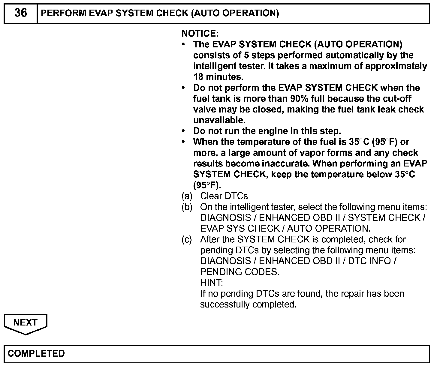 - Using intelligent tester monitor results enables the EVAP (Evaporative Emission) system to be confirmed.