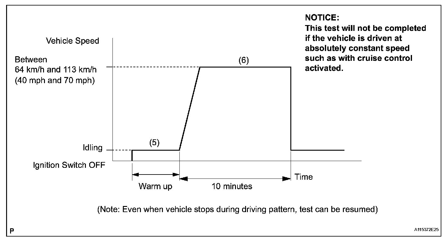 7. Drive the vehicle at 40 km/h (25 mph) or more for at least 2 minutes.