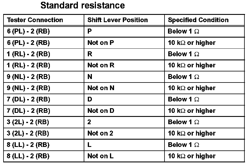 Measure the resistance of the switch when the shift lever is moved to each position.