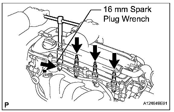 3. Using a 16 mm spark plug wrench, remove the spark plug.